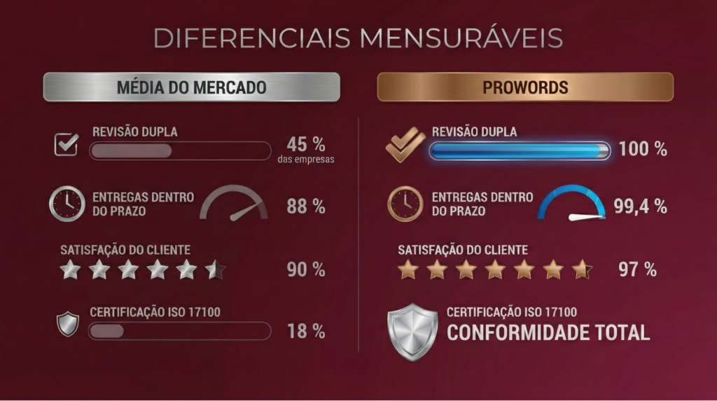 Não basta prometer qualidade; é preciso comprová-la. Veja como a ProWords se posiciona em relação à média do mercado brasileiro: