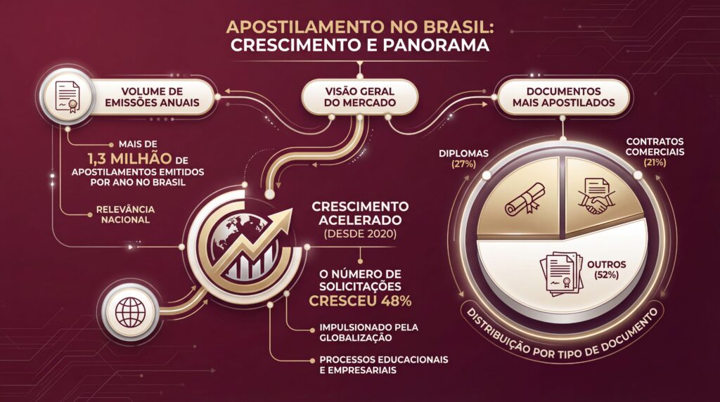 - Mais de 1,3 milhão de apostilamentos são emitidos por ano no Brasil;